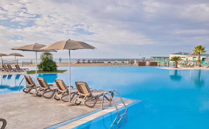 Lokacija: Hotel Azul Beach Resort Montenegro (ex Holiday Village) se nalazi u Ulcinju, na 4 km od samog centra. Smešten je na najlepšem delu Velike ulcinjske plaže i okružen predivnim parkom i borovom šumom. Hotel je potpuno renoviran 2020. godine i pruža mogućnost za savršen odmor u Crnoj Gori.
