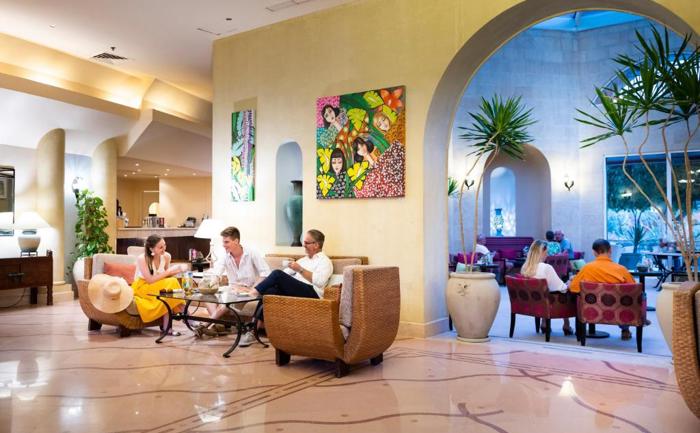 Hotelski sadržaj: U hotelu Three Corners Ocean View gosti mogu uživati u glavnom restoranu Oceana (na bazi švedskog stola) sa brojnim tematskim večerama i u à la carte restoranu DuPort Dine. Pored toga u sklopu kompleksa je više barova: Lobby Bar, Pool Bar, Beach Bar, Peanuts Bar, i DuPort Bar. Besplatan WiFi dostupan je u sobama i u zajedničkim prostorijama.