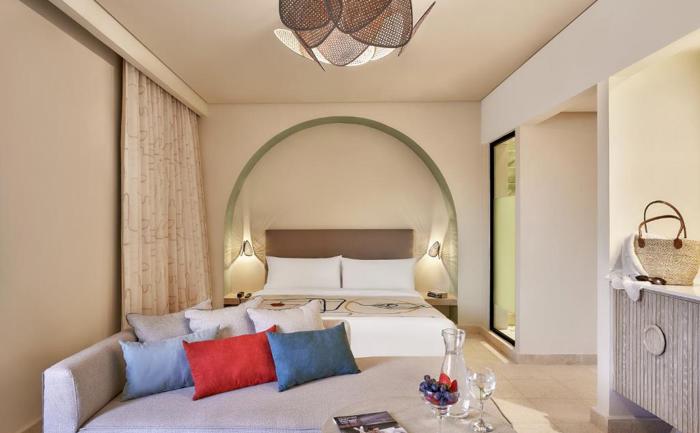 Sobe: Hotel Three Corners Ocean View raspolaže sa 162 sobe. U ponudi agencije su Premium sobe (sa pogledom na more, lagunu, marinu ili baštu), Superior renovirane sobe 32 m²  i Suite sobe. Premium sobe imaju površinu oko 22 m². Veće sobe kao što je Ocean View Suite imaju oko 58 m². Sve smeštajne jedinice opremljene su kupatilom, klima-uređajem, TV, WiFi, sefom, mini-barom, aparatom za čaj/kafu i balkonom ili terasom (u zavisnosti od raspoloživosti).
