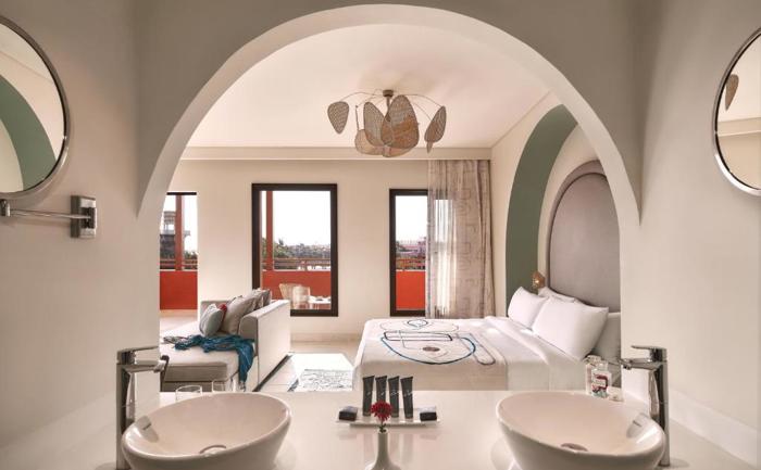 Lokacija: Hotel Three Corners Ocean View nalazi se na promenadi u Abu Tig marini, na 5 minuta od centra El Goune. Do privatne plaže (Zeytouna) se stiže besplatnim brodićem — plaža se nalazi oko 700 metara od hotela. Pored Zeytouna plaže, gostima je dostupan i manji ‘’sundeck’’ sa stepenicama ili pontonom koji vodi u more. Od aerodroma Hurghada udaljen je oko 25 km. Hotel je koncepta adults only (samo za odrasle 16+).