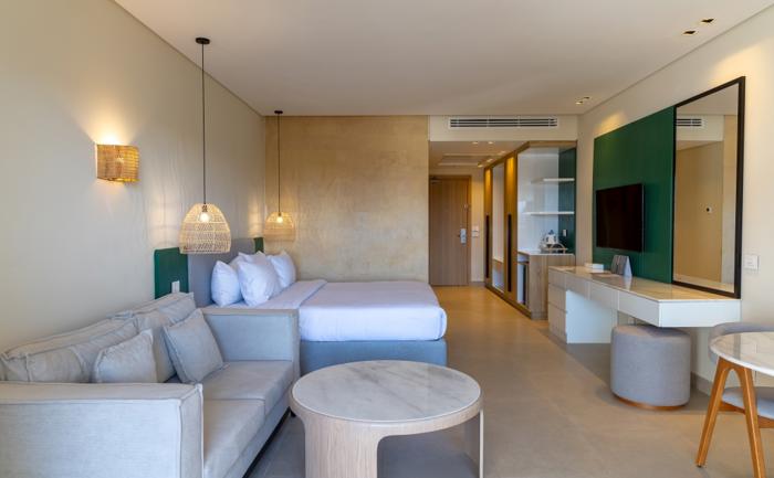 Sve smeštajne jedinice opremljene su kupatilom, klima uređajem, SAT TV-om, WiFi internetom, sefom, mini barom, aparatom za čaj i kafu i balkonom ili terasom.