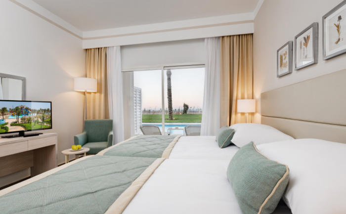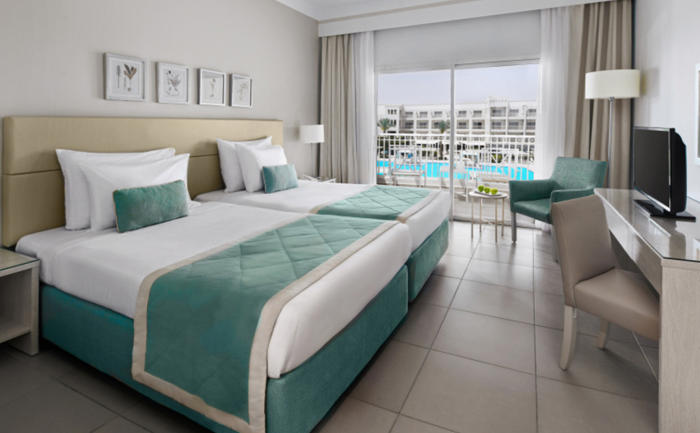 Sobe: Hotel Jaz Aquaviva Resort raspolaže sa ukupno 487 soba u različitim kategorijama, uključujući superior sobe, deluxe sobe i porodične sobe. Superior sobe su površine 34 m² sa kapacitetom za 2 odrasle osobe, dok porodične sobe imaju oko 43 m² i mogu ugostiti do 2 odrasle osobe i 2 deteta uz raspored kreveta po tipu sobe. Sve sobe imaju kupatilo, klima-uređaj, TV,Wi-Fi, sef, mini bar, aparat za čaj i kafu, kao i balkon ili terasu sa pogledom na bazen ili baštu.