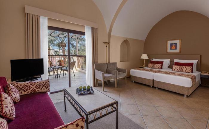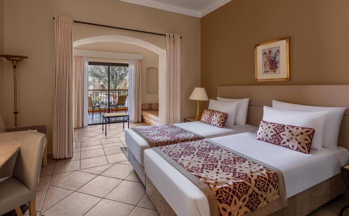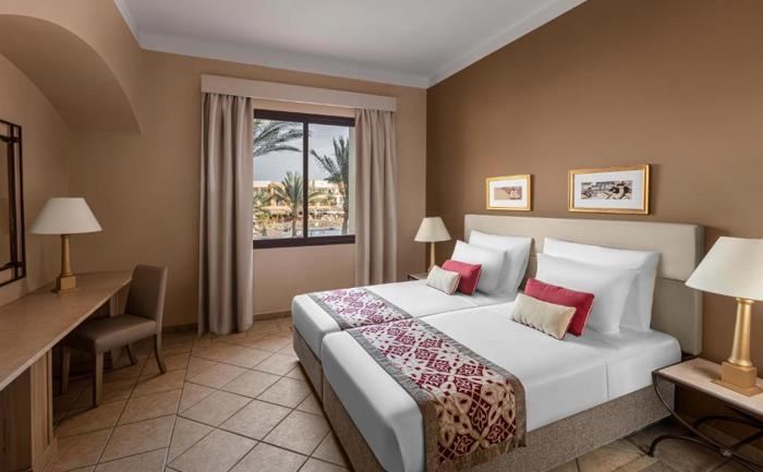 Sobe: Hotel Jaz Makadi Saraya Resort raspolaže sa ukupno 325 soba raspoređenih u niskim zgradama mediteranskog stila. U ponudi su standardne sobe površine oko 32 m² sa kapacitetom za 2 odrasle osobe i 1 dete, porodične sobe sa većom površinom 45-55 m²  namenjene smeštaju do 2 odrasle osobe i 2 deteta, kao i povezane sobe pogodne za boravak porodica. Sve sobe imaju kupatilo, klima-uređaj, TV, Wi-Fi, sef, mini frižider, aparat za kafu i čaj, kao i balkon ili terasu sa pogledom na bazen ili uređenu baštu.