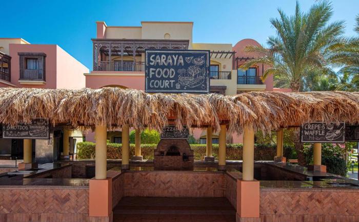 Hotelski sadržaj: U hotelu Jaz Makadi Saraya Resort gosti mogu uživati u glavnom restoranu sa bufet uslugom, kao i u ukupno 7 à la carte restorana koji se nalaze u okviru kompleksa Madinat Makadi. À la carte ponuda obuhvata italijansku, azijsku, orijentalnu i međunarodnu kuhinju, specijalitete sa roštilja, morske plodove i tematsku beach kuhinju. Na raspolaganju su lobby bar, pool barovi i beach bar, kao i recepcija koja radi 24 časa, menjačnica, bankomat i besplatan Wi-Fi u zajedničkim prostorijama.