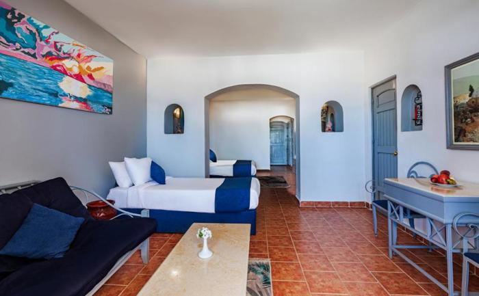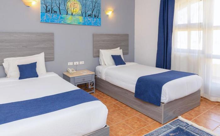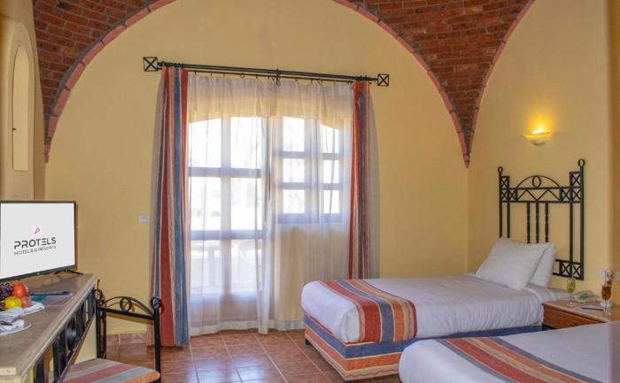 Sobe: Hotel Protels Crystal Beach Resort raspolaže sa 269 smeštajnih jedinica izgrađenih u autentičnom nubijskom i arapskom stilu, raspoređenih u zgradama okruženim vrtovima. U ponudi su standard sobe (pogled na vrt, bazen ili more), superior sobe sa pogledom na more, porodične sobe i suite. Sobe imaju kupatilo sa tušem, klima uređaj, TV, wi fi u javnim prostorima, sef, mini bar sa vodom (dopunjava se jednom dnevno), kuvalo za vodu i balkon ili terasu.