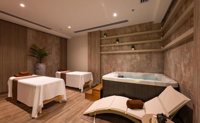 Sport i zabava: U sklopu hotela Sentido Naga Bay su 4 bazena, uključujući glavni bazen, Relax Pool (samo za odrasle), i zonu sa toboganima u okviru aqua park-a koji je dostupan gostima hotela i susednog kompleksa. Gosti u Wellness&Spa centru bez doplate mogu koristiti saunu, parno kupatilo i hammam. Uz doplatu su dostupne profesionalne masaže (uključujući masaže toplim kamenjem, aromaterapiju), kozmetički tretmani, kao i opcije tretmana tela. Sportske aktivnosti uključuju teretanu, teniske i padel terene, odbojku na plaži, modernu teretanu, jogu, a dostupni su i vodeni sportovi, ronilački centar, kao i sezonski animacioni programi za goste.