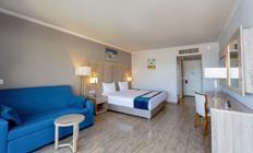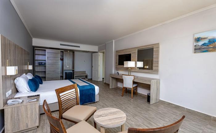 Sobe: Seven Seas Jolie Bay ima 372 sobe. U ponudi su: standardne, 36 m² (pogled bašta, bazen, more ili more i bazen) i porodične sobe, 70 m² - sa dve odvojene sobe. U hotelu postoje i povezane sobe (connected). Svaka soba ima kupatilo, fen, TV, telefon, mini bar, klima uređaj, sef, aparat za čaj i kafu, balkon ili terasu.