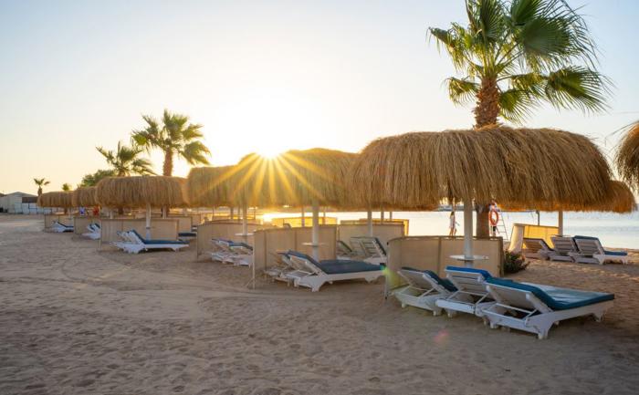 Lokacija: Hotel Seven Seas Jolie Bay, kompletno renoviran i otvoren u martu 2022. Smešten je u zalivu Soma Bay, na sopstvenoj peščanoj plaži sa postepenim ulaskom u vodu a jedan deo je kupališna zona sa plitkom vodom. Od aerodroma i od Hurgade 40 km, a od centra Safage 8 km.