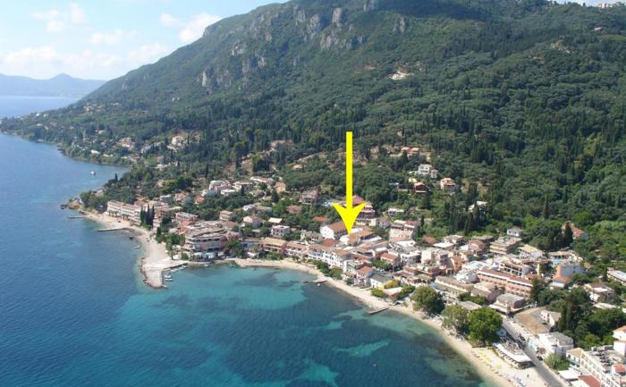 Lokacija: Galini Stuidos se nalazi u mestu Benitses, na ističnoj strani ostrva Krf. Vila Galini Studios se sastoji od dve zgrade, jedna je na samoj plaži, dok je druga preko puta, iznad magistrale, udaljena oko 80m od plaže. Vila je smeštena na 650 m od marine Benitses. U neposrednoj blizini, na magistrali, nalazi se autobusko stajalište međugradskog autobusa koji vozi do grada Krf. Od glavnog grada i aerodroma vila je udaljena oko 12 km.