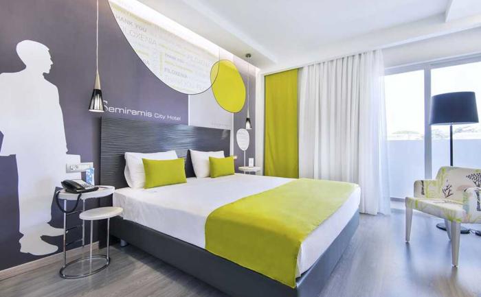 Sobe: U dve zgrade Semiramis hotel raspolaže sa ukupno 200 smeštajnih jedinica. U ponudi agencije su standard sobe (20-28m2), sa pogledom na kopno, bočnim pogledom na more ili direktnim pogledom na more . Sve sobe imaju kupatilo, fen, TV, telefon, klima uređaj, sef, frižider i balkon, besplatan WiFi.