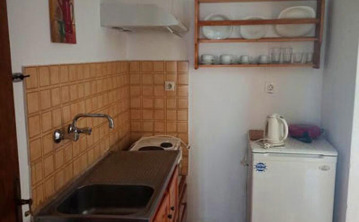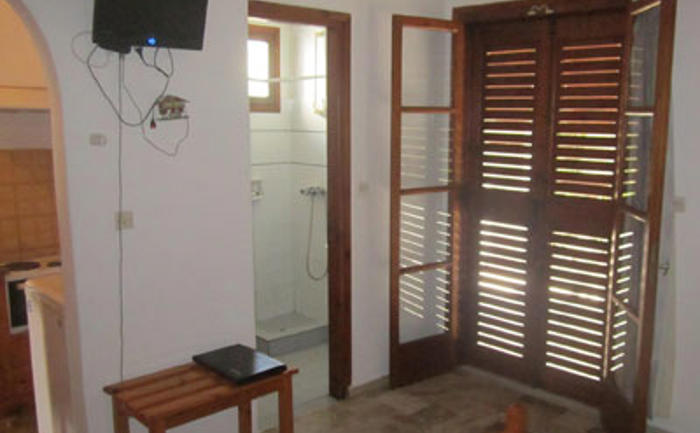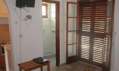 Sobe: Dvokrevetni studio se nalazi na izdignutom prizemlju i sadrži opremljenu kuhinju (mali šporet sa rernom, grejač vode...), deo za spavanje sa dva ležaja, kupatilo i lepu terasu sa garniturom za sedenje i pogledom na vrt. Svi studiji su opremljeni TV–om, klima uredjajem (uz doplatu na licu mesta (opcija), 6 eur dnevno po studiju) i wi - fi Internetom. Veličina studija je cca 19 - 20 kvm + terasa. Vila Olimpia je B kategorije, ima peškire.