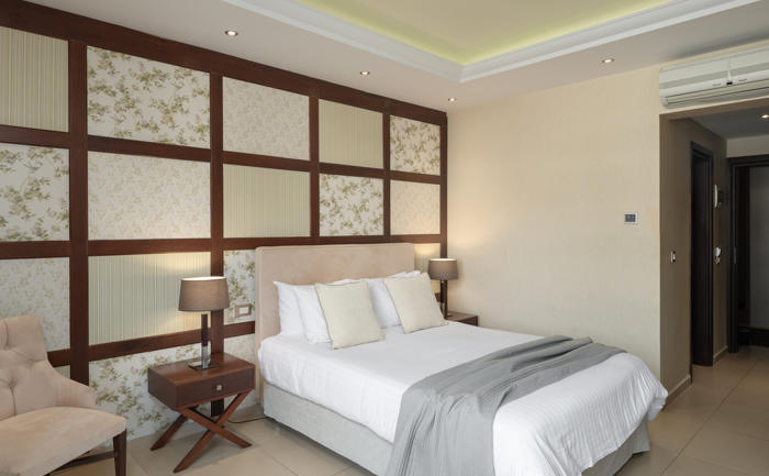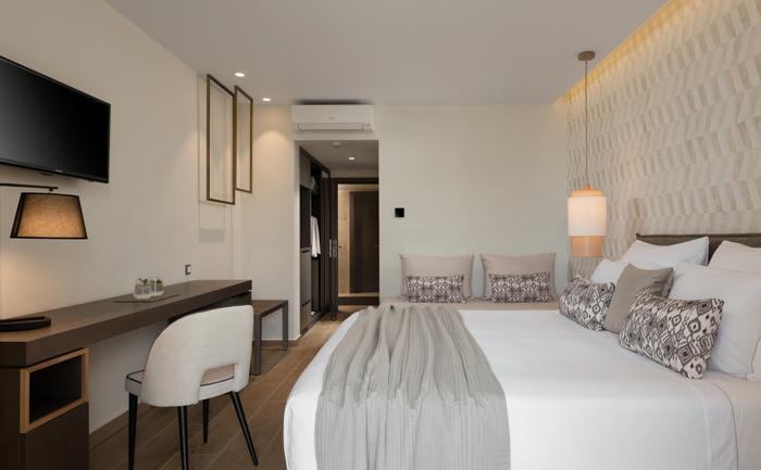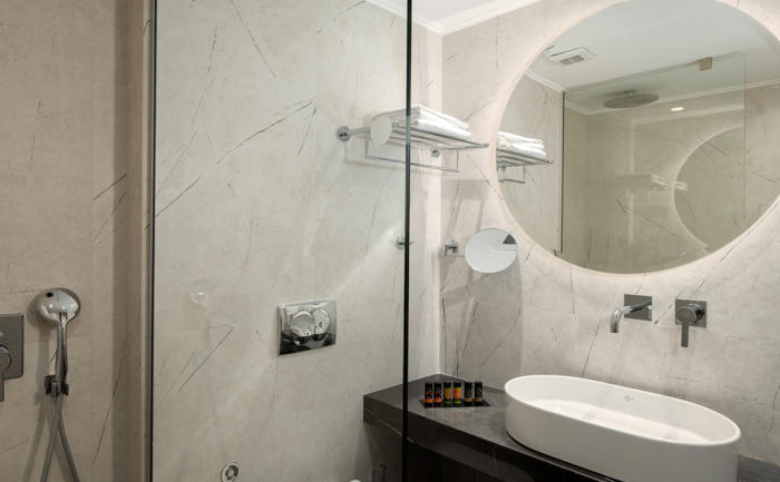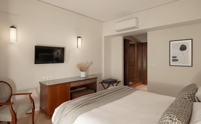 Sobe: Thertemis Palace ima 245 soba, a sve imaju  kupatilo/ fen, TV, telefon, klima uređaj, sef (uz doplatu), set za kafu i čaj, besplatan WiFi, frižider i balkon. U ponudi turističke agencije su svi tipovi soba. Standard sobe su  kvadrature oko 24m2, za smeštaj maksimum za tri odrasle osobe ili dve odrasle i jedno dete (treći ležaj sofa) i bebu (obavezna najava prilikom rezervacije). Najčešće se sastoje od jednog bračnog ležaja i jedne sofe predviđene za spavanje treće osobe. Sobe tipa superior land view imaju pogled na grad i potpuno su renovirane 2019. godine. Moderno su dekorisane, kvadrature oko 24m2 i pružaju smeštaj za maksimum tri odrasle osobe ili dve odrasle i jedno dete (treći ležaj sofa).