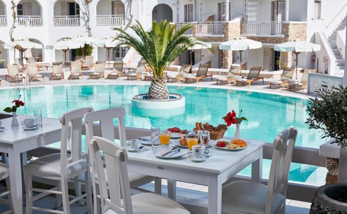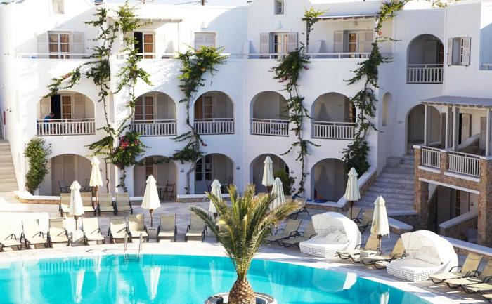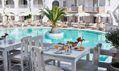 Lokacija: Hotel se nalazi u Kamariu, na istočnoj obali Santorinija, 50m udaljen od šljunkovito peščane plaže Kamari i samo par minuta hoda od restorana, barova i prodavnica u centru sela. Od aerodroma je udaljen oko 5km, od Fire oko 10km.