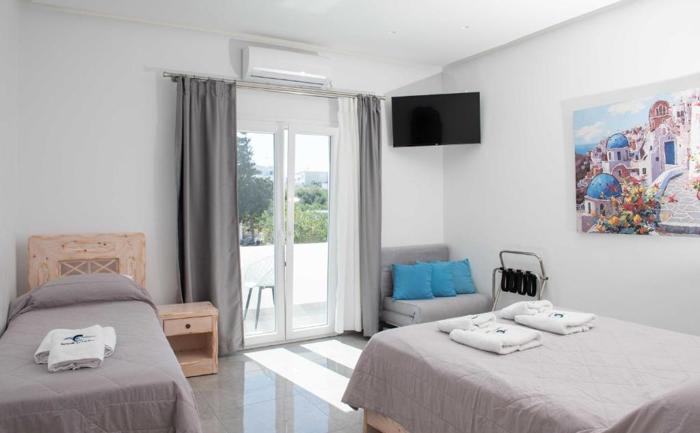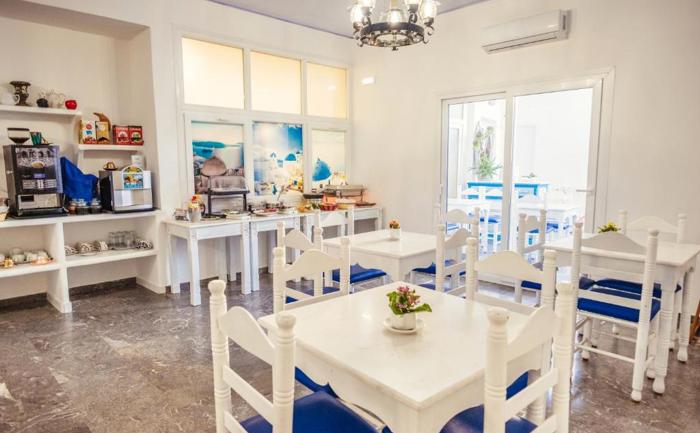 Lokacija: Hotel se nalazi u tradicionalnom selu Karterados na ostrvu Santorini, oko 800 m od centra glavnog grada Fire i u mirnoj okolini sela sa restoranskim i trgovinskim sadržajima u blizini. Autobuska stanica koja povezuje sa plažama i drugim delovima ostrva nalazi se vrlo blizu hotela. Aerodorm je udaljen 5km.