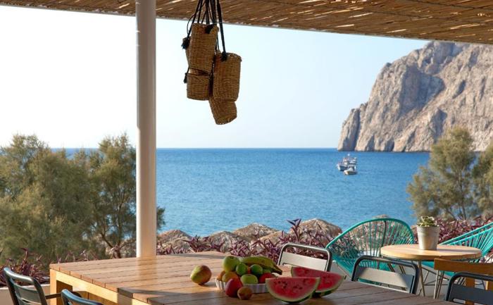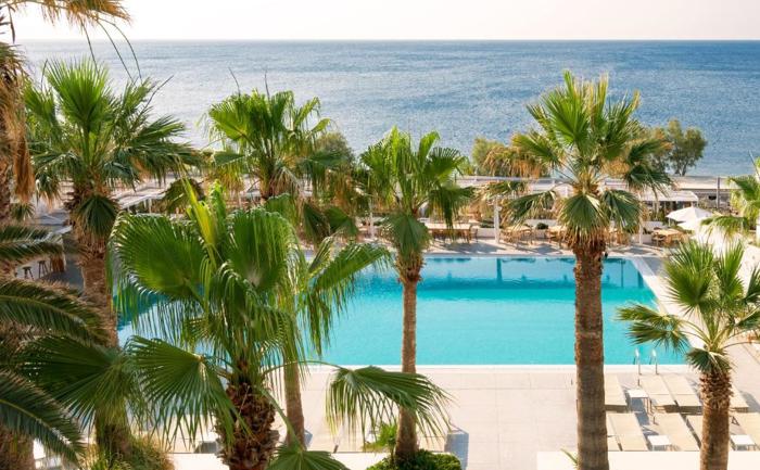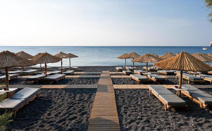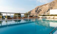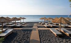 Lokacija: Hotel se nalazi direktno na crnoj vulkanskoj plaži Kamari, u srcu istoimenog mesta, uz šetalište puno restorana, barova i prodavnica. Plaža je privatna i ležaljke i suncobrani su dostupni gostima hotela bez doplate. Glavni grad Fira je udaljen oko 9km, a aerodrom Santorini 7 km.