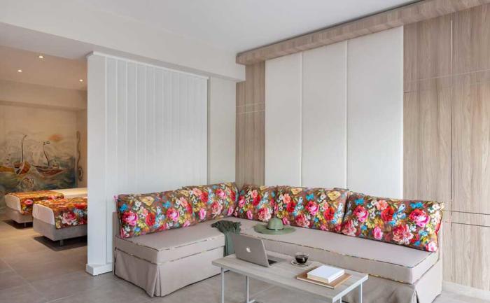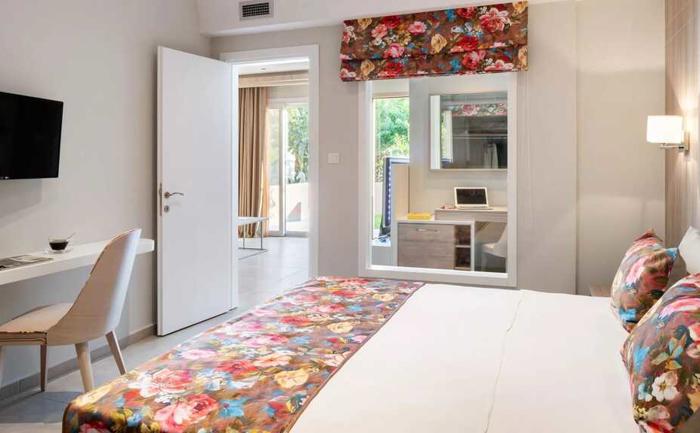 imaju veliku terasu koja izlazi na zajednički bazen. Junior suite open plan garden view su nove sobe, izgrađene 2022. godine, imaju dva nivoa. Sve sobe imaju kupatilo, fen za kosu, klima uređaj, SAT TV, radio, telefon, mini frižider, Wi Fi internet i balkon ili terasu.