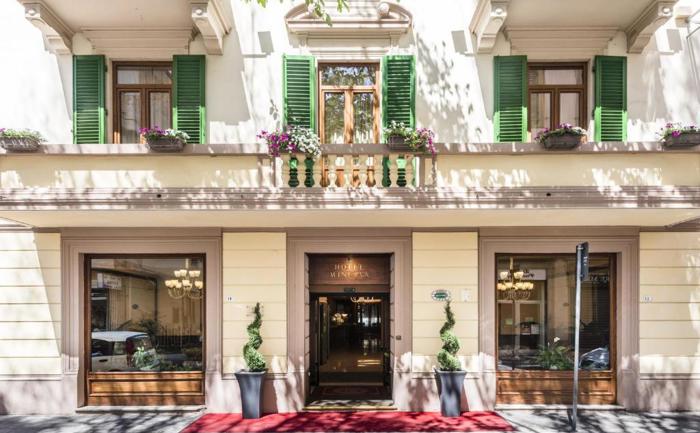 Hotel Minerva Palace je smešten u istorijiskoj zgradi u centru grada Montekatini, par minuta hoda od glavnog trga Pjaca del Popolo. Svaka soba je površine oko 17m² i ima: kupatilo, fen, telefon, TV, sef, klima uređaj, mini frižider, wi fi internet. U sklopu hotela nalaze se lobi, restoran, bar, TV sala, terasa.