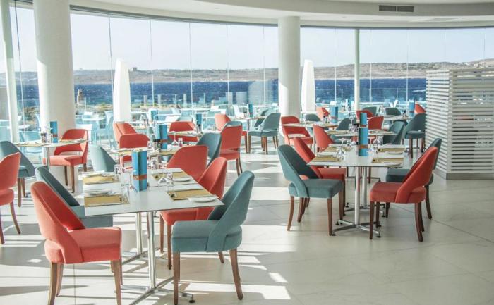 Hotelski sadržaj: Hotel Ramla Bay Resort nudi ukupno 8 restorana, uključujući glavni bufet restoran Terramar. Pored toga, tu su 3 à la carte restorana: Piatto Nero sa italijanskom kuhinjom, Ramla Bay Fish & Grill sa specijalitetima od ribe i Waterline Pool Bar za lagane obroke i osvežavajuća pića. Za opuštanje gosti mogu koristiti ukupno 5 barova raspoređenih po hotelu i pored bazena. WiFi je besplatan u zajedničkim prostorijama. Hotel ima 12 liftova, mini market, prodavnice i parking.
