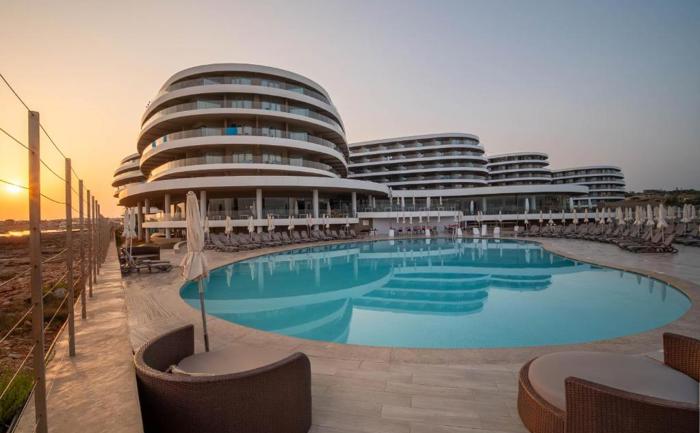 Lokacija: Hotel Ramla Bay Resort nalazi se na samoj privatnoj peščanoj plaži, udaljenoj oko 25 metara od hotela. Centar mesta Mellieha je na 5 km, dok su Valletta i Sliema na 21 km odnosno 18 km. Do najbližih restorana i barova potrebno je 4 km. Autobuska stanica je udaljena 200 m, a aerodrom Malta Luqa je na 21 km. Pozicija omogućava jednostavan pristup plaži, lokalnim atrakcijama i prirodnim rezervatima, uključujući Ghadira Nature Reserve na 5 km.