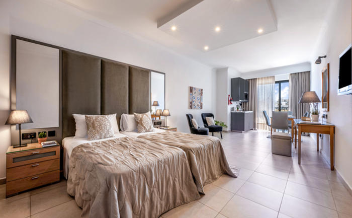 Sobe: Plaza Regency (Suites) zauzima izdvojeni deo zgrade namenjen apartmanskom i suite smeštaju u okviru kompleksa Plaza Regency. U ovom delu se nalaze studiji koji su funkcionalne smeštajne jedinice pogodnije za duži boravak i samostalno pripremanje obroka. Studiji su prosečne površine 30 m² i namenjeni su za maksimalno 2 osobe. Svaki studio ima kupatilo, klima-uređaj, Wi-Fi, LCD televizor, sef, direktan telefon, fen za kosu i čajnu kuhinju opremljenu mini frižiderom, mikrotalasnom i osnovnim posuđem, što omogućava pripremu lakih obroka.