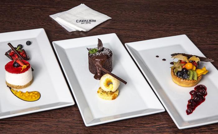 Hotelski sadržaj: Pored glavnog restorana Ottocento, hotel Cavalieri Art ima Pommarola a la carte restoran (Jun-Sept), Baco Noir lounge bar, bar, internet centar, menjačnicu, servis rent a car i prodavnicu suvenira.