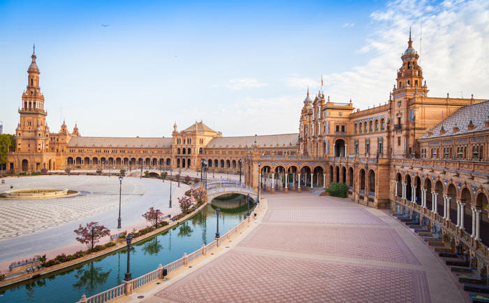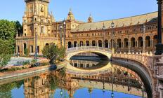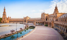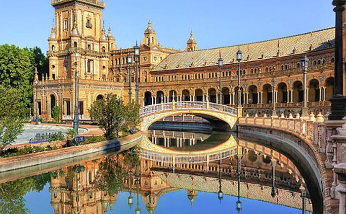 Sastanak grupe na aerodromu „Nikola Tesla” dva i po sata pre poletanja aviona. Let za Sevilju u 08.00h, kompanijom Air Serbia na liniji JU588. Dolazak u Sevilju u 11.35h. Nakon sletanja, prolaska pasoških i carinskih kontrola, sledi panoramska tura Sevilje i pauza na trgu Plaza Espana. Smeštaj u hotel. Slobodno veče. Noćenje.