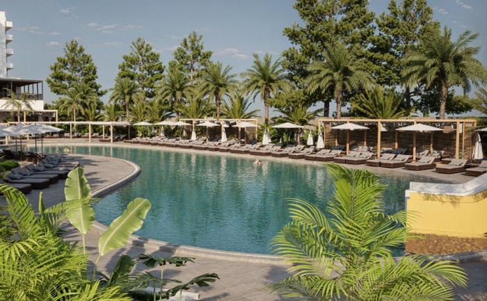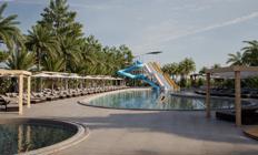 Ležaljke i suncobrani pored bazena