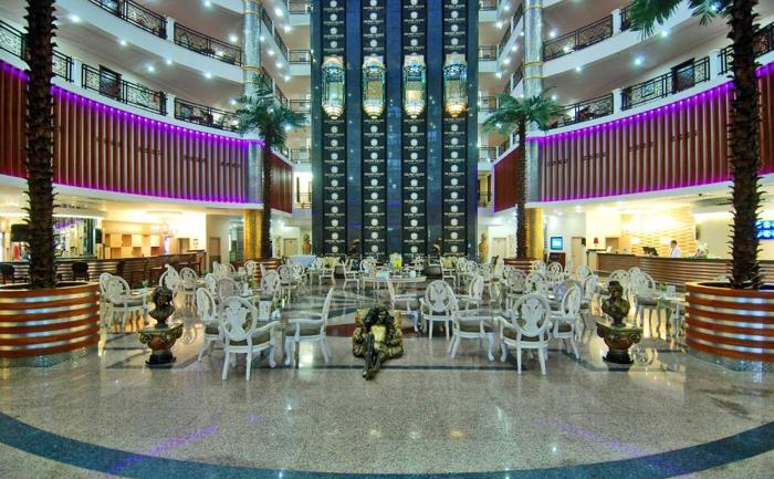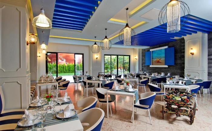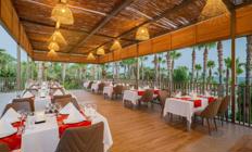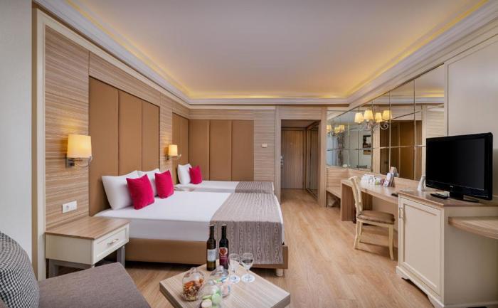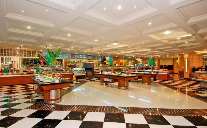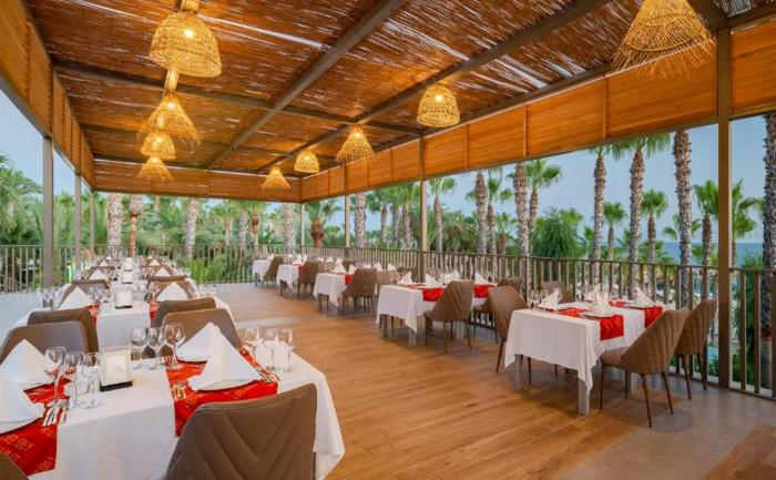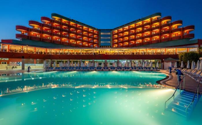 Hotelski sadržaj: Hotel Delphin Deluxe Resort pored glavnog restorana u kojem se služe pansionski obroci na bazi švedskog stola, sadrži i 7 a la cart restorana ( Ottoman Barbeque, Fish, Dolce Vita, China House, Mediterranean, Teppanyaki i Margarita) i brojne barove kao što su lobi bar, beach bar, disco bar, vitamin bar, sport bar, pool bar i za najmlađe goste hotela bar za decu. Od ostalih usluga hotel poseduje kozmetičke tretmane, usluge frizera i usluge lekara.