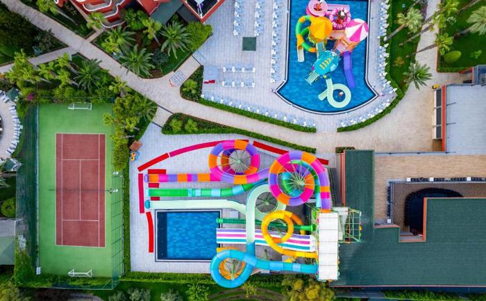 Sport i zabava: Gostima hotela Delphin Deluxe Resort su na raspolaganju 6 spoljašnjih bazena (ukupne površine 2500m2) od kojih su 2 sa toboganima i 2 unutrašnja bazena ( ukupne površine 290m2). Ljubitelji aktivnog odmora mogu uživati u stonom tenisu, bilijaru, sportovima na vodi (uz doplatu), dok za relaksaciju mogu koristiti tursko kupatilo, saunu i uslugu masaže (uz doplatu). Za najmlađe goste hotel poseduje luna park, dečiji klub, igraonicu, bioskop, diskoteku, animatore i dečije igralište.
