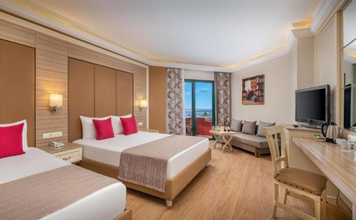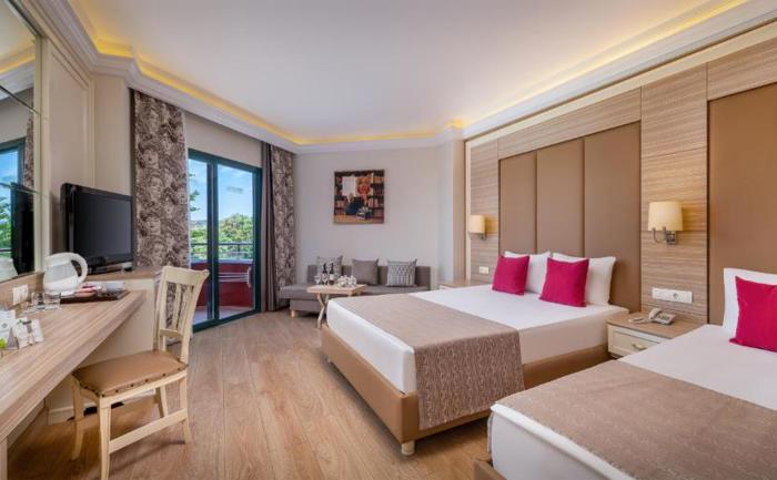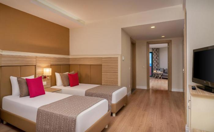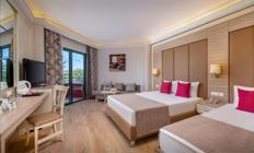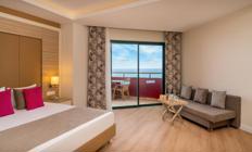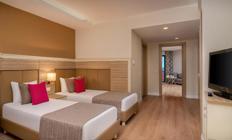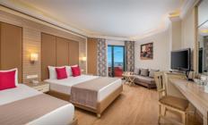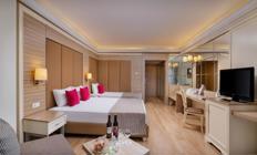 Sobe: Hotel Delphin Deluxe Resort u svom sastavu ima ukupno 495 smeštajnih jedinica. U ponudi agencije su standardne (nalaze se u glavnoj zgradi, površine 27m2, maksimum kapacitet je dvoje odraslih i dvoje dece ili troje odraslih i jedno dete) i porodične sobe ( nalaze se u anex zgradi, površine 43m2, sastoji se od dve odvojene spavaće sobe, maksimum kapacitet je troje odraslih i dvoje dece ili četvoro odraslih i jedno dete). Pomoćni krevet u svim sobama je veličine 179 x 75cm. Sve sobe su veoma prostane i sve imaju kupatilo, TV, fen za kosu, telefon, klima uređaj, mini bar, kuvalo za vodu, sef i balkon.
