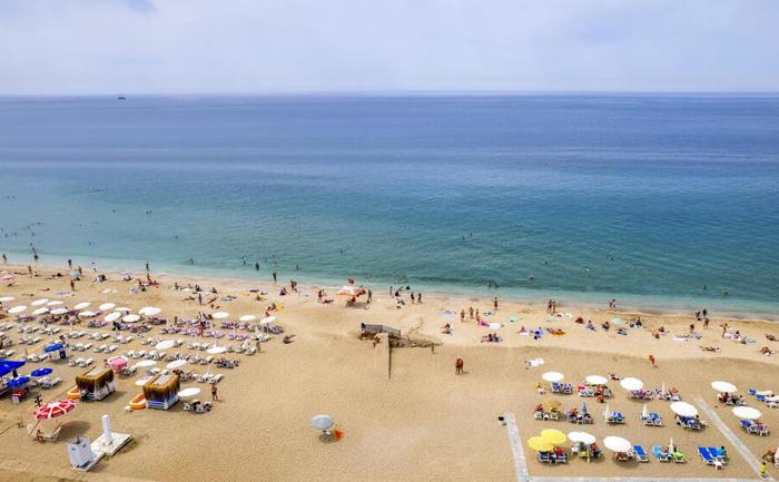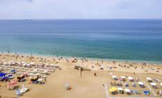 Kleopatrine plaže, do koje se prelazi ulica i na kojoj se ležaljke i suncobrani