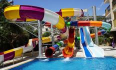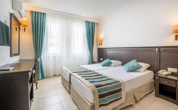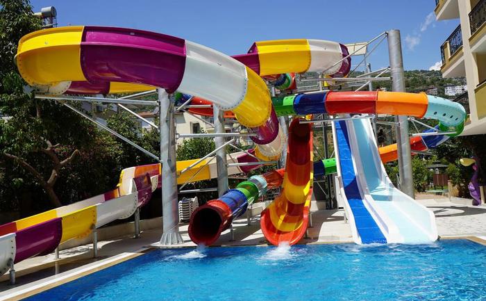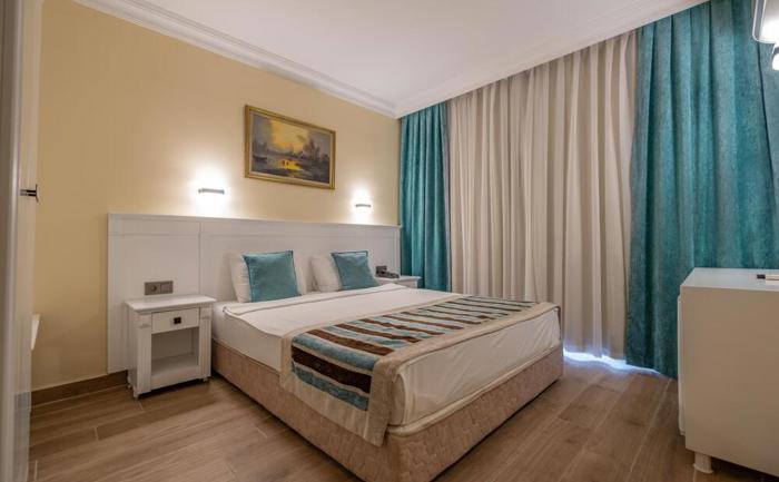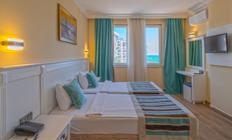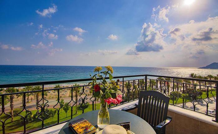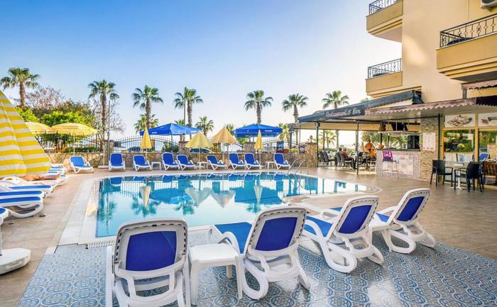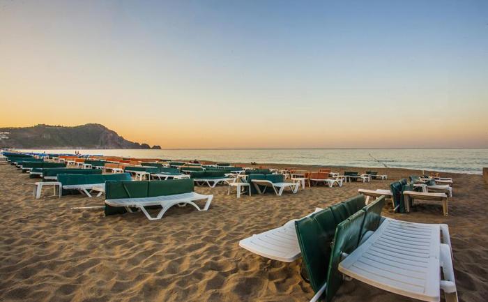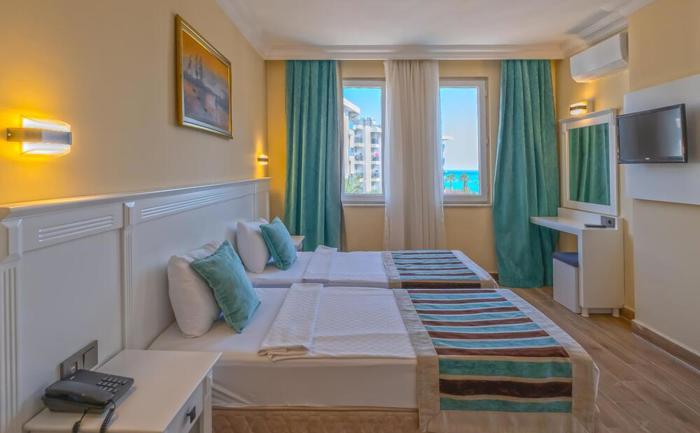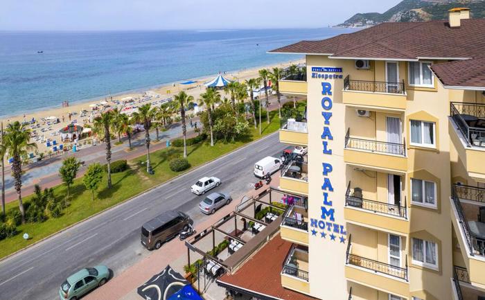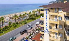 Lokacija: Hotel Kleopatra Royal Palm nalazi se 50 m od Kleopatrine plaže do koje se prelazi ulica (ležaljke i suncobrani na plaži se koriste uz doplatu, okvirno po 2€ dnevno ležaljke i suncobrani). Od centra Alanje u kom se nalazi mnoštvo restorana, kafića i prodavnica udaljen je 2 km. Od aerodroma Antalija udaljen je 120 km.