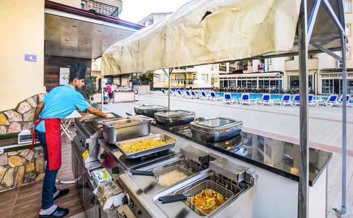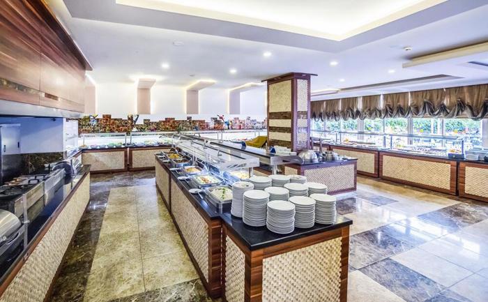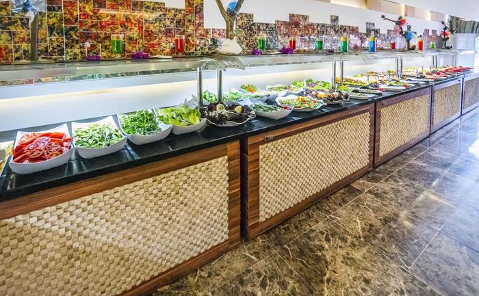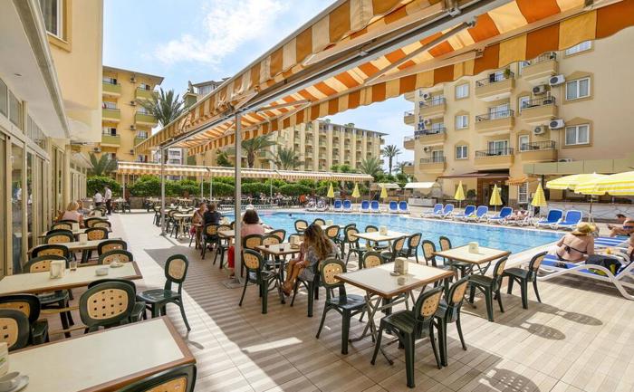 Hotelski sadržaj: Hotel Kleopatra Royal Palm ima glavni restoran u kome se služe pansionski obroci. Gostima je na raspolaganju i bar pored bazena, kao i bar na plaži (uz doplatu). Od dodatnih sadržaja u ponudi su menjačnica i servis za pranje i peglanje veša.