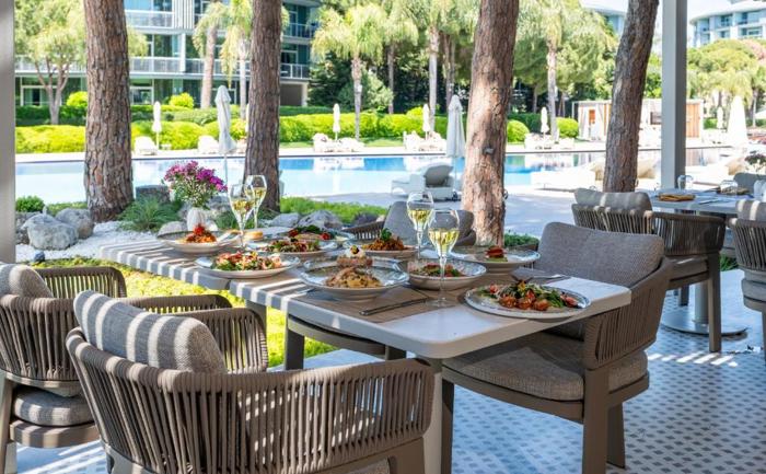 Hotelski sadržaj: U hotelu Calista Luxury Resort gosti mogu uživati u glavnom restoranu Bellum sa bogatom buffet ponudom turske i internacionalne kuhinje za doručak, ručak i večeru, kao i u više à la carte restorana koji nude mediteranska, turska, riblja, azijska, italijanska i internacionalna jela. U sklopu kompleksa nalaze se Schiller Coffee & Ice Cream sa izborom kafe i sladoleda, Beach Snack punkt na obali, Cafe Calista sa izborom čokolade, Carpo voćni kutak i tradicionalni Gozleme Corner tokom dana. Hotel raspolaže velikim izborom barova na otvorenom i zatvorenom prostoru, uključujući White/Black lobby bar sa internacionalnim pićima i muzičkim programom. Od dodatnih sadržaja i usluga u ponudi su servis za pranje i peglanje veša, usluga čuvanja dece, frizerski salon, prodavnice, rent a car i menjačnica.