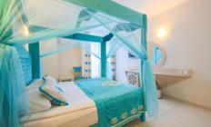 Sobe: Hotel u svom sastavu ima ukupno 547 smeštajne jedinice podeljenih u 5 blokova-zgrada. Zgrade su građene po uzoru na brod. Standardne sobe (površine 30 m²) za maksimalno četiri osobe. Porodične sobe (ppovršine 40 m²) sastoje se od dve odvojene spavaće sobe, maksimalno mogu da prime pet osoba. Captain suite (površine 50 m²) sastoji se od dnevne sobe, dve spavaće sobe i poseduju dva kupatila. Maksimalan kapacitet pet osoba. Swim-up sobe (površine 27 m2) imaju direktan pristup bazenu sa terase jedinice, bazen dele sa nekoliko soba i maksimalno mogu smestiti tri osobe. Sve sobe su imaju  kupatilo, mini bar, sef, fen, wi fi (uz doplatu), klimu, manji balkon, dok swim up jedinice imaju prostranu terasu .Sobe su delimično renovirane tokom za letnju sezonu 2026, renoviranje se mahom odnosi na kupatila.
