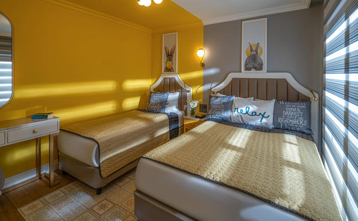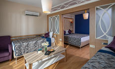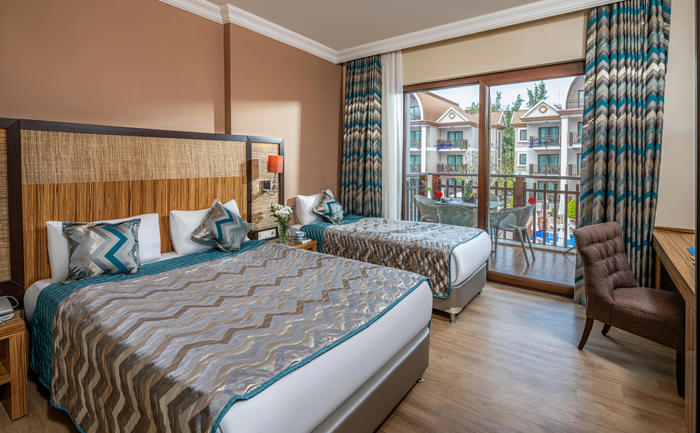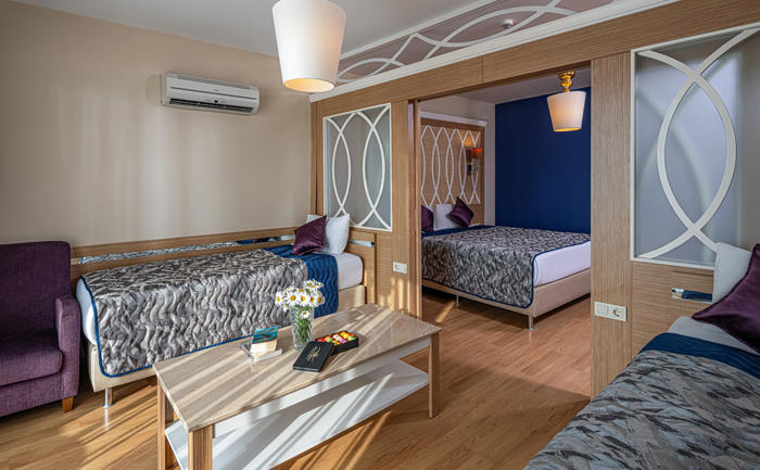 Sobe: Quattro Family Club Dem hotel u svom sastavu ima 269 smeštajnih jedinica podeljenih u dve sekcije – rabbit i glavna zgrada. Rabbit sekcija je posebno interesantna za porodice sa decom jer ima oslikane zidove na kojima se nalaze zeke iz raznih uglova, u raznim bojama i veličinama pa su samim tim interesantne kao dekoracija deci. Standard sobe su veličin 25-27 m² (bračni i single ležaj). Porodične sobe su veličine 38-41 m², sastoje se iz dve sobe odvojene kliznim vratima. Sve smeštajne jedinice poseduju kupatilo, fen, TV, telefon, klima uređaj, sef, mini bar, ketler za čaj i kafu, balkon ili terasu. Većina smeštajnih jedinica pripada kategoriji porodičnih soba. Izuteno komforan smeštaj u prijatnom ambijentu i okruženju.