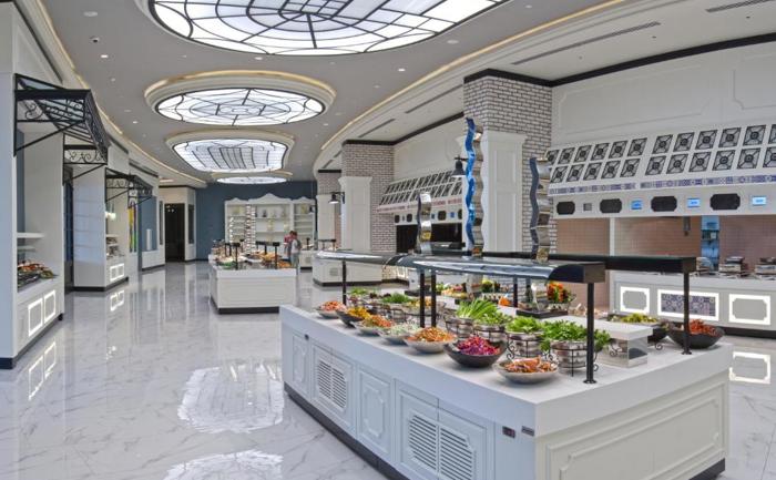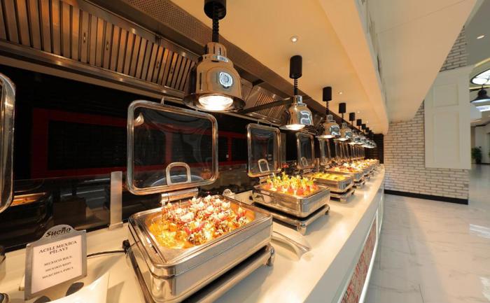 Hotelski sadržaj: Pored glavnog restorana koji nudi jedinstvene ukuse svetskih kuhinja, hotel Sueno Deluxe u svom sastavu poseduje i 6 a la carte restorana (riblji, italijanski, meksički, azijski, BBQ, turski), poslastičarnicu, kao i Sueno Square koji se nalazi pored bazena i tokom dana nudi širok izbor hrane i pića. Hotel u svom sastavu ima i nekoliko barova (lobby, teracce, beach, lounge, vitamin, pool, pier bar). Od dodatnih usluga, gostima je na raspolaganju šoping centar, room service, konferencijski centar, game centar i doktor na poziv.