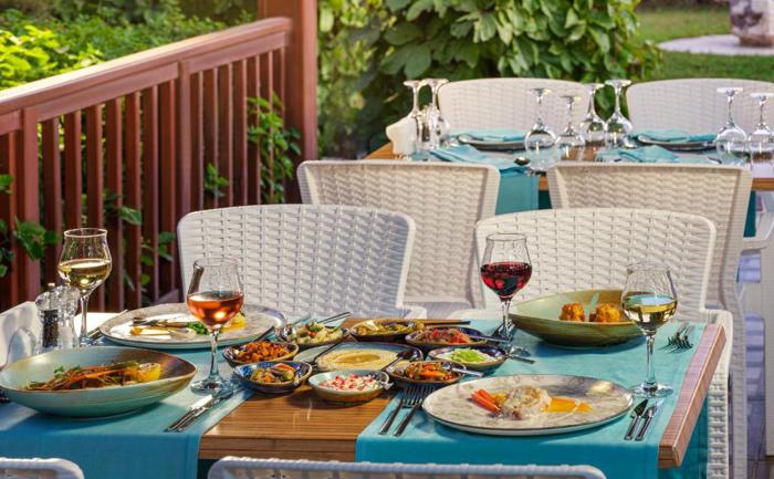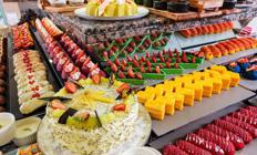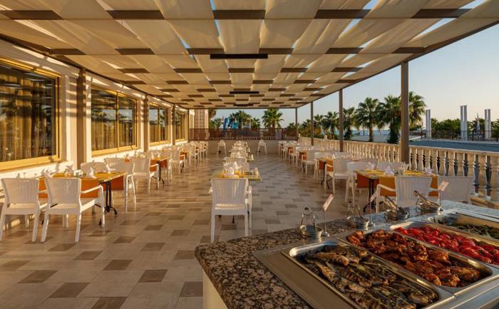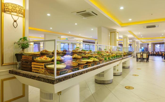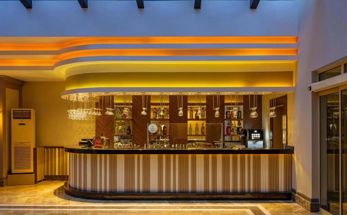 Hotelski sadržaj: Pored glavnog restorana u kome se služe pansionski obroci, gostima su na raspolaganju i 2 a la carte restorana. Osim restorana hotel ima 4 bara u kojima se služe lagani obroci, osvežavajući napici i poslastice. Snack bar se nalazi na hotelskoj plaži. Od ostalih sadržaja hotel ima shopping centar, servis pranja i peglanja veša i menja?nicu.