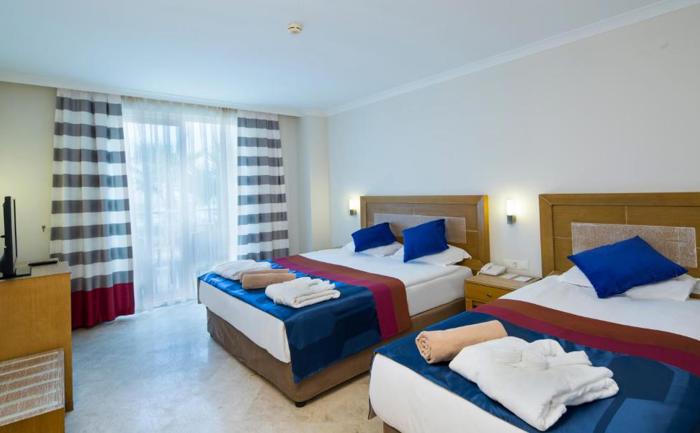Sobe: Smeštajne jedinice se nalaze u 14 blokova – depadansa na 2 sprata. Ima ukupno 76 soba, od kojih je 72 kategorije standard (21 m2) u 4 kategorije superior (44 m2). Svaka soba ima kupatilo, klima uređaj, mini bar, sef, telefon, wi fi konekciju, telefon, fen, set za čaj i kafu i balkon. Superior sobe se sastoje iz dve spavaće sobe povezane vratima.