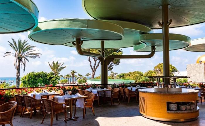 carte restorana. Gostima je na raspolaganju dijetetski i vegeterijanski meni. Osim restorana na raspolaganju su poslastičarnica i 4 bara koji u toku dana i večeri služe različite vrste užina, domaće i pojedine uvozne napitke. Od dodatnih sadržaja hotel poseduje uslugu pranja i peglanja veša, rent a car desk, usluge lekara, prodavnicu, suvenirnicu, bankomat i menjačnicu.