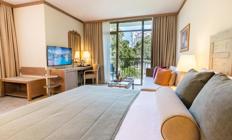 vratima sa bračnim ležajem. Imaju 1 kupatilo i 1 balkon. Deluxe suite sobe se nalaze u glavnoj zgradi, veličina ovih soba je