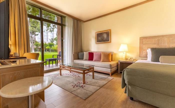 Sobe: Gloria Verde Resort hotel raspolaže sa 272 smeštajne jedinice podeljene u više kategorija. Hoteski kompleks ima glavnu zgradu, garden deo koji čini više dvospratnih zgrada i vile. Svaka soba ima kupatilo (tuš/wc), fen, TV, telefon, mini bar, sef, klima uređaj, papuče, bade mantil, set za čaj i kafu, wi fi internet konekciju i balkon ili terasu. U ponudi turističke agencije nalaze se standardne, suite sobe i vile. Standardne sobe se nalaze u glavnoj zgradi hotela, veličina ovih soba je 27 m², u sobama se nalaze dva bračna ležaja. Junior suite sobe se nalaze u glavnoj zgradi, veličina ovih soba je 31 m², u sobama se nalaze bračni ležaj i sofa (jedna prostorija). Suite sobe se nalaze u