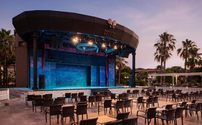 Hotelski sadržaj: Pored glavnog restorana u kojem se služe pansionski obroci na bazi švedskog stola, hotel Papillon Belvil sadrži i 2 a'la carte restorana (italijanski i kineski - besplatno jednom u toku boravka uz prethodnu rezervaciju). Osim restorana, hotel poseduje brojne barove (na plaži, pored bazena, u lobiju), kao i poslastičarnicu. U sklopu glavnog restorana postoji deo koji je namenjen isključivo deci. Od dodatnih sadržaja hotel ima servis za pranje i peglanje veša, usluge lekara i menjačnicu.