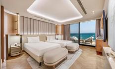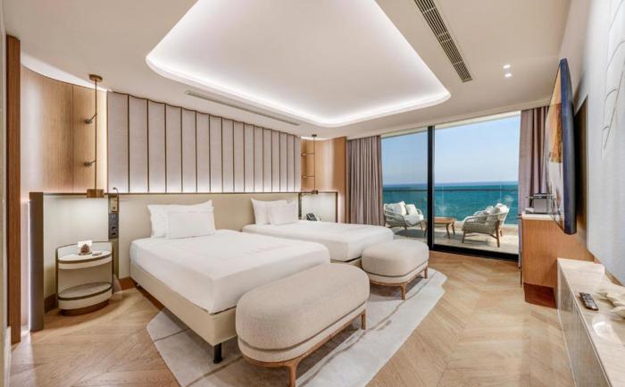 Sobe: Regnum The Crown hotel raspolaže sa 343 smeštajnih jedinica i 15 vila. Seascape suite sa pogledom na more je veličine 110 m2, u svom sastavu ima dnevni boravak i spavaću sobu, za maksimalni kapacitet 4 osobe i bebu. Family suite (pogled kopno), veličine 125 m2 , poseduje dve sobe odvojene vratima, za maksimum 5 osoba i dete. Grand family suite sa pogledom na kopno je veličine 185 m2 , poseduje dve sobe odvojene vratima i dnevni boravak, za maksimum 8 osoba i bebu. Panoramic suite (pogled more) je 215 m2 , za maksimalni kapacitet 5 osoba i bebu. Horizon suite (pogled more) veličine 200 m2 je maksimlanog kapaciteta 8 osoba i beba. Crown horizon (pogled more) je veličine 450 m2 , u svom sastavu poseduje i saunu i maksimalnog je kapaciteta 7 osoba. Svaka soba je modern opremljena i sadrži balkon/terasu, kupatilo, wi-fi, fen, telefon, TV, minibar, sef, klima uređaj, set za čaj ili kafu. Hotel je izuzeno luksuzan i može da odgovori na potrebe najzahtevnijih gostiju.