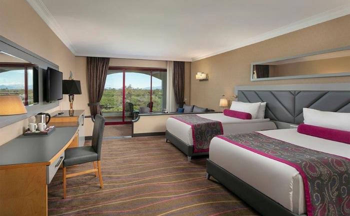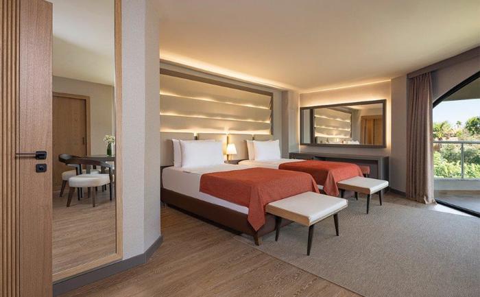 Sobe: Hotel Sirene Belek raspolaže sa ukupno 495 smeštajnih jedinica u glavnoj zgradi i vilama. U glavnoj zgradi dostupne su: Standard Junior Suite sobe (47 m²), Duplex Family Suite (80 m²), Terrace Suite (95 m²) i Family Suite (95 m²). Ekskluzivni deo kompleksa čine suite i villa tipovi soba, inspirisani modernom arhitekturom, sa direktnim pristupom privatnom bazenu sa pogledom na golf teren ili baštu. U mirnijem, vila delu kompleksa, dostupne su: Superior Family Room (60 m²), Garden Floor Rooms (47 m²) i Deluxe Junior Suite (47 m²). Sve sobe sadrže kupatilo, klima-uređaj, SAT TV, Wi-Fi, sef, mini-bar, fen i balkon sa pogledom na more, golf teren ili baštu.