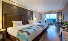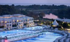 Lokacija: Titanic Delux Belek je veoma luksuzan hotel, zauzima površinu od 170 000 m². Od sopstvene plaže je udaljen oko 1 km, od centra Beleka 6 km, a od aerodroma u Antaliji 30 km. Do peščane plaže se stiže brodićima koji voze rekom na svakih desetak minuta i vožnja traje 5-7 minuta. Hotel odiše luksuzom kao i visokim nivoom usluge koju pruža.