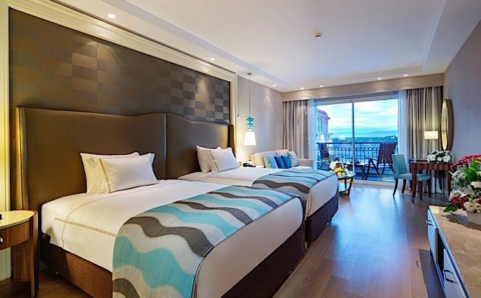 Sobe: Hotel Titanic Delux Belek poseduje ukupno 600 soba, većina je standardne kategorije (34 m²). Osim standardnih u ponudi su i superior sobe (39 m²). Svaka ima kupatilo, fen, SAT TV sa muzičkim kanalima, wi fi, telefon, klima uređaj, sef, ketler za kafu ili čaj, mini bar i balkon.