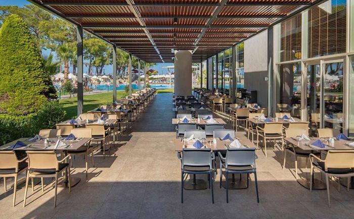 Hotelski sadržaj: Pored glavnog restorana gde se služe pansionski obroci po principu švedskog stola, hotel nudi i 5 a la carte restorana (riblji, meksički, azijski, italijanski i turski), 7 barova gde se služe sve vrste alkoholnih i bezalkoholnih pica i poslastičarnicu koja gostima nudi veliki izbor kolača i poslastica. Hotel od ostalih usluga gostima nudi iznajmljivanja bicikla (uz doplatu).