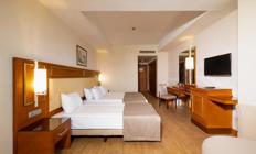 Sobe: Crystal Prestige Elite Pearl Collection raspolaže sa ukupno 579 smeštajnih jedinica. U ponudi agencije su standardne sobe, porodične duplex sobe i porodične sobe sa pogledom na bazen. Standardne sobe imaju površinu od 34 m² i dostupne su sa pogledom na kopno ili bočnim pogledom na more. Duplex family sobe prostiru se na 50 m² i sastoje se od dve spavaće sobe i dva kupatila, dok pool family sobe imaju površinu od 40 m² i pogled na bazen. Sve smeštajne jedinice imaju kupatilo sa tušem i wc-om, fen, SAT TV, telefon, wi fi internet, klima uređaj, sef, mini bar koji se dopunjuje jednom dnevno, set za pripremu čaja i kafe, kao i balkon, izuzev economy soba koje imaju francuski balkon.