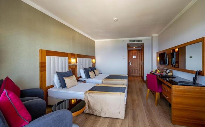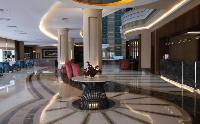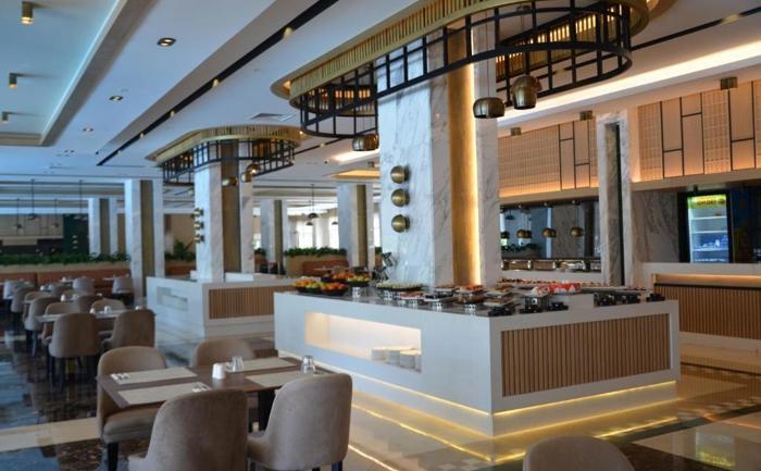Hotelski sadržaj: U sastavu hotela se nalazi glavni restoran koji poslužuje doručak, kasni doručak, ručak, večeru, ponoćnu supu i poseduje posebnu sekciju sa dijetalnim izborom jela. Dva a la carte restorana su specijalizovana za jela italijanske i otomanske kuhinje (besplatno korišćenje jednog od restorana jednom tokom boravka od minimum 5 noćenja). U sklopu poslastičarnice se služe sendviči i razne vrste slatkih obroka. Snack bar restoran poslužuje lagane užine u periodu od 10:00 – 16:00h, na plaži je takođe dostupan bar koji služi vafl, sladoled, voće i razne vrste napitaka. Od dodatnih sadržaja u ponudi su servis za pranje i peglanje veša i shopping zona. Beldibi je urbano naselje koje ima mnogo sadržaja u vidu prodavnica, bazara, butika i suvenirnica tako da gostima pruža udobniji boravak.
